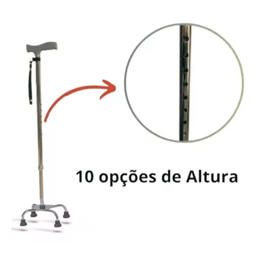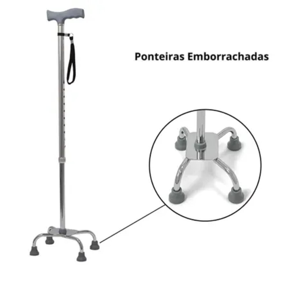 1. Maior estabilidade: Suas quatro pontas proporcionam mais equilíbrio e segurança, ideal para quem precisa de apoio adicional.