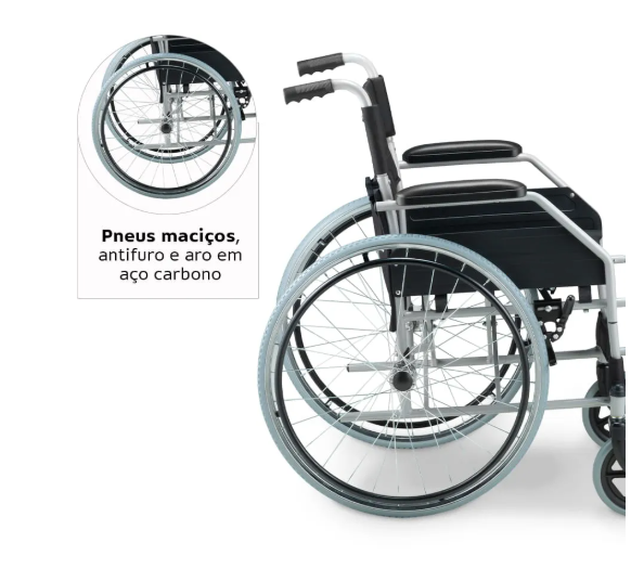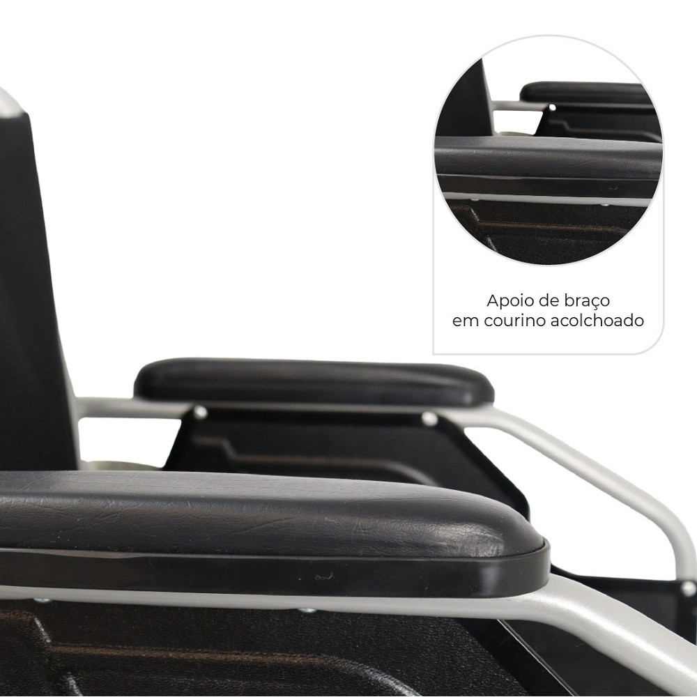 - Ergonomia total: apoios de braço almofadados, assento e encosto acolchoados e freios acessíveis.