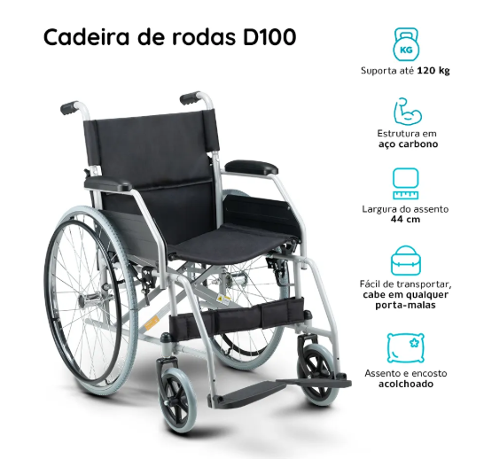 | Conteúdo da embalagem | 1 cadeira de rodas D100 + manual de instruções |