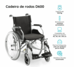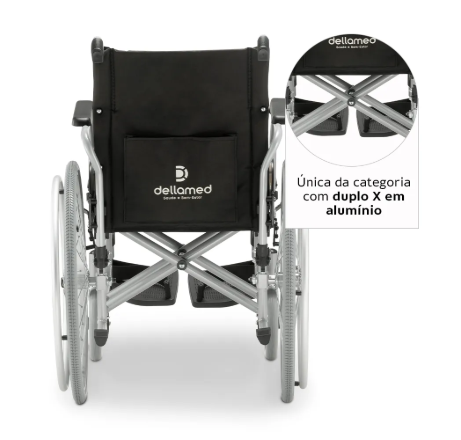 Ficha Técnica e Todos os detalhes da Cadeira de Rodas em Alumínio Dobrável até 120 Kg D600 Dellamed