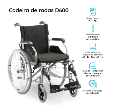 Perguntas e Respostas mais frequentes sobre a Cadeira de Rodas em Alumínio Dobrável até 120 Kg D600 Dellamed