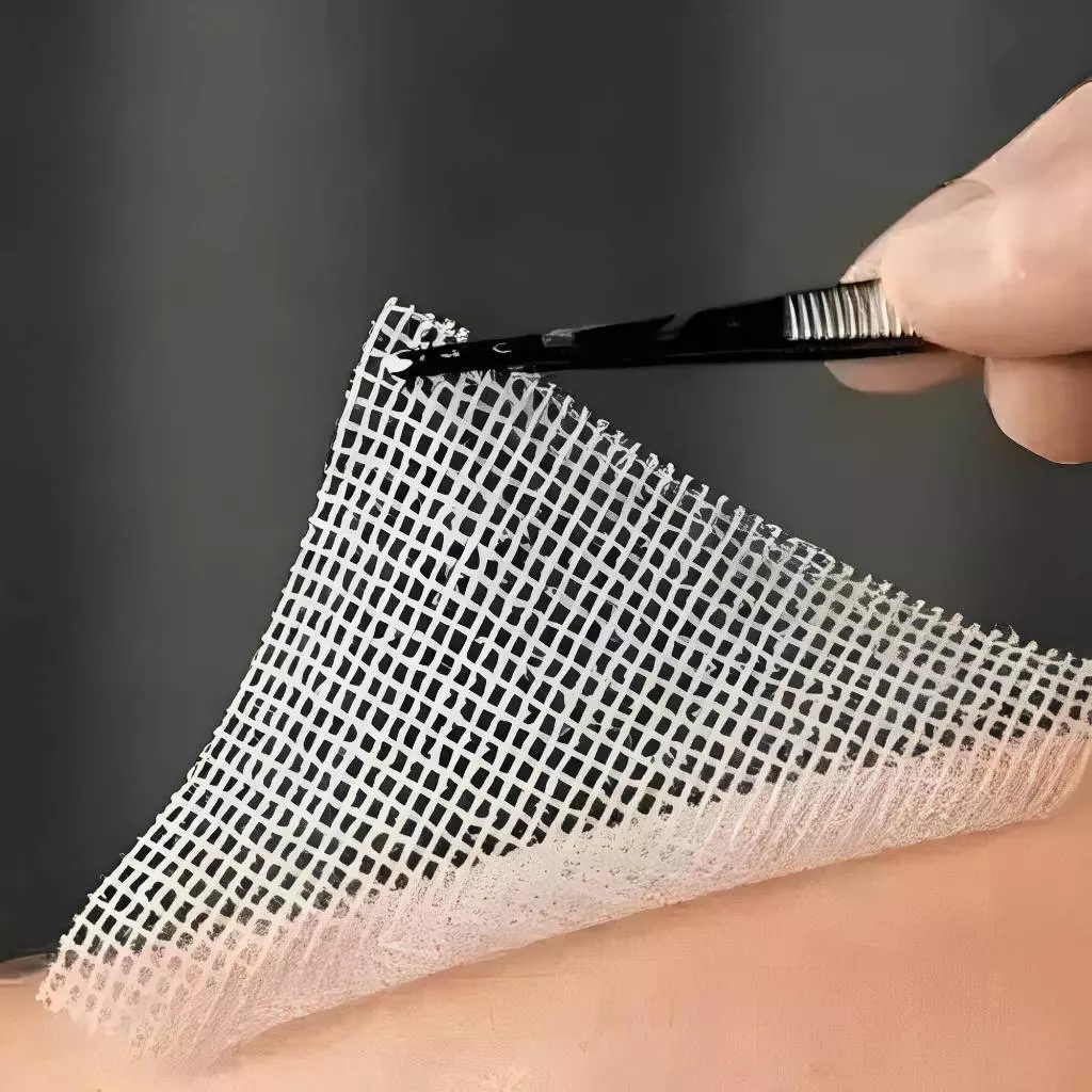 - Flexível e adaptável: pode ser recortado no formato ideal para cada tipo de ferida.