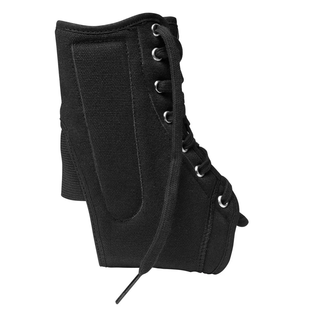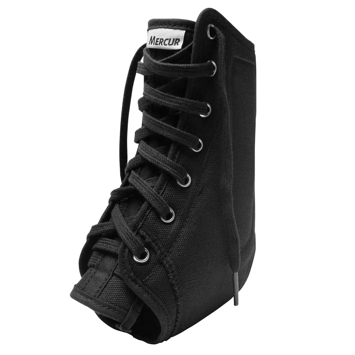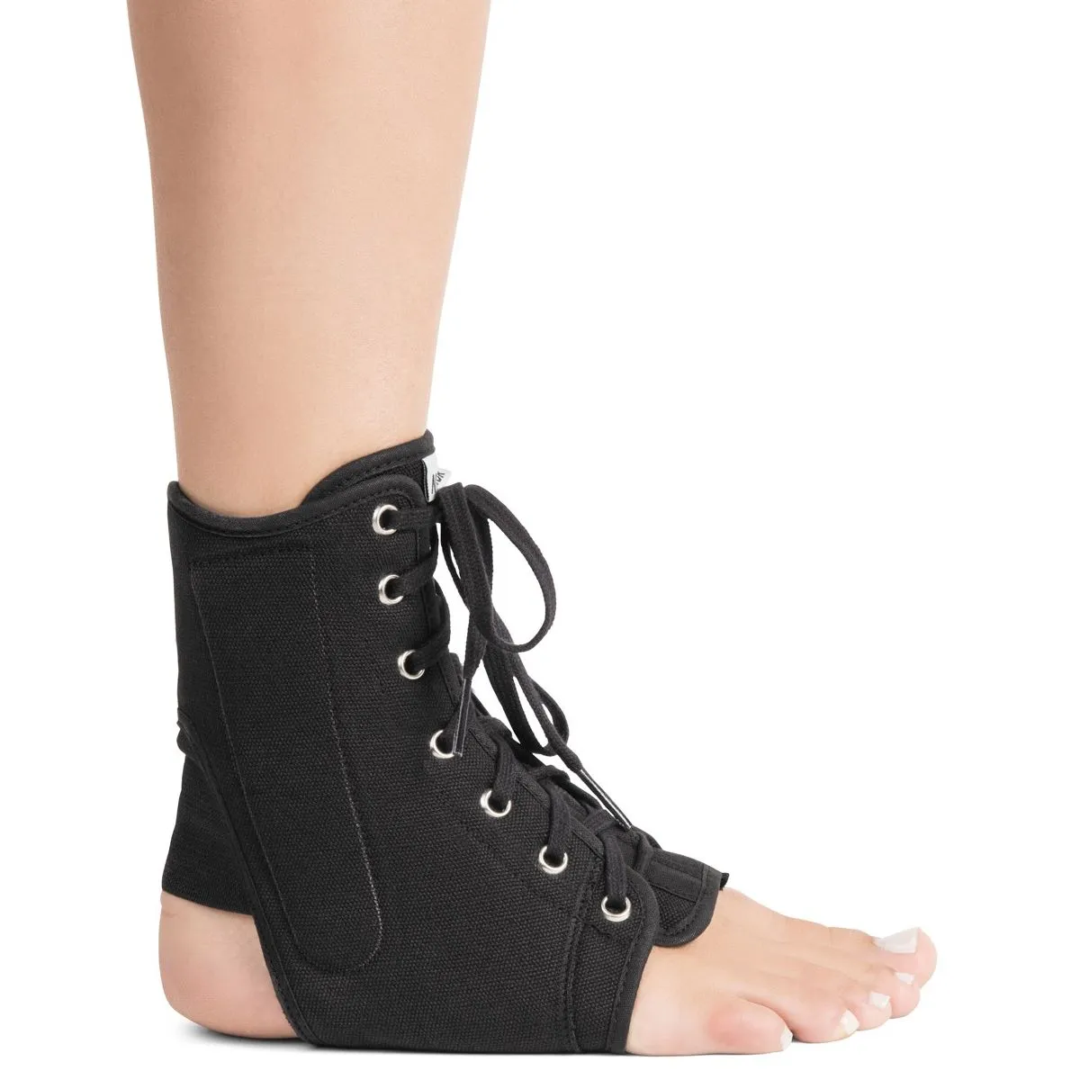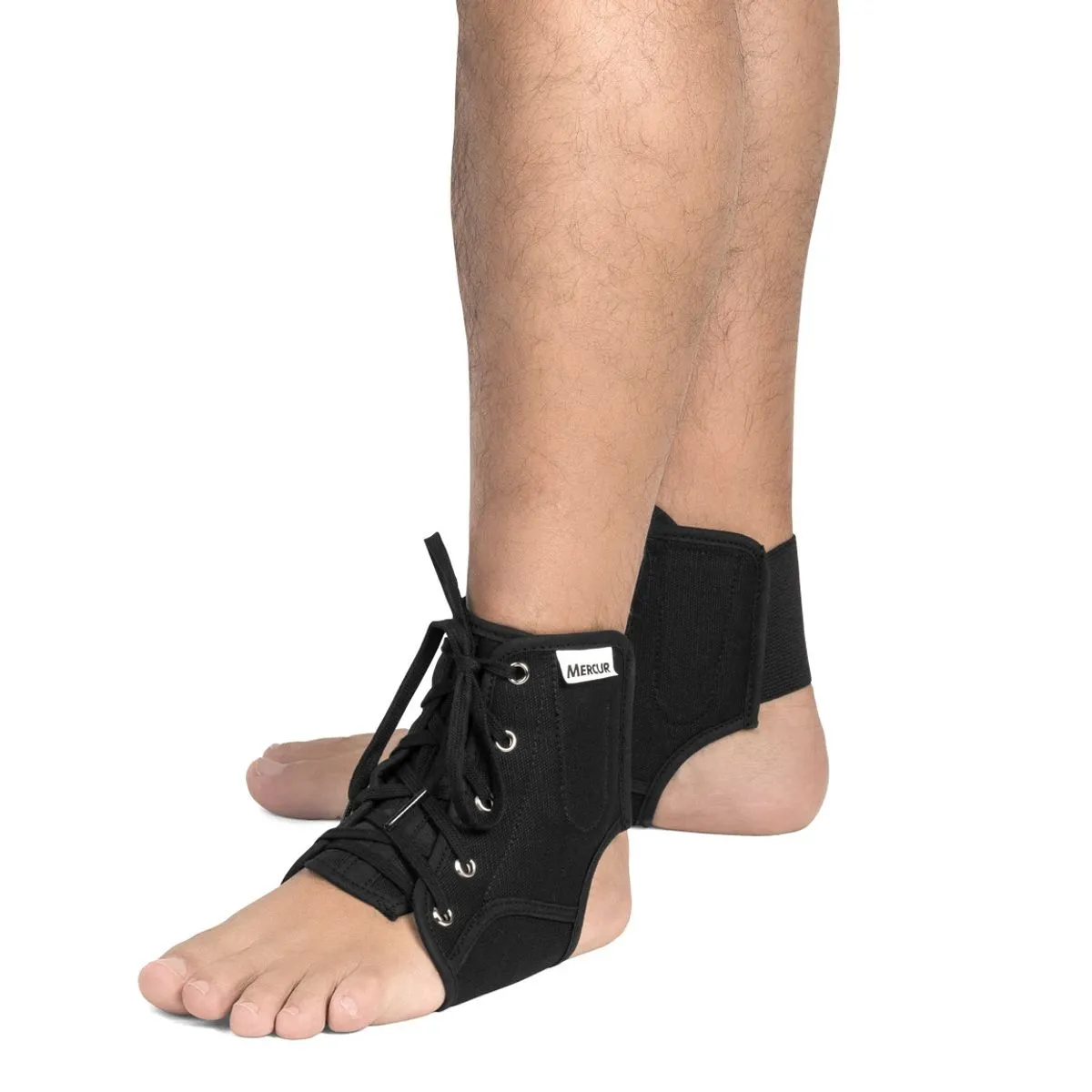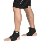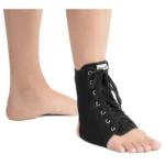 - Coloque o estabilizador no tornozelo e ajuste as hastes laterais.