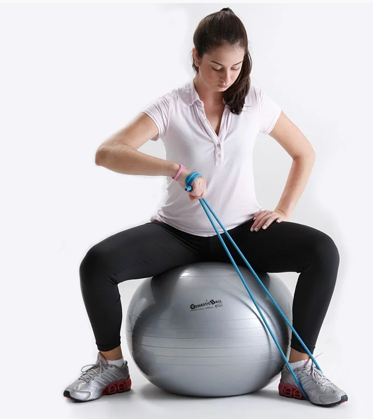 - Segure a faixa elástica e posicione-a conforme o exercício desejado.