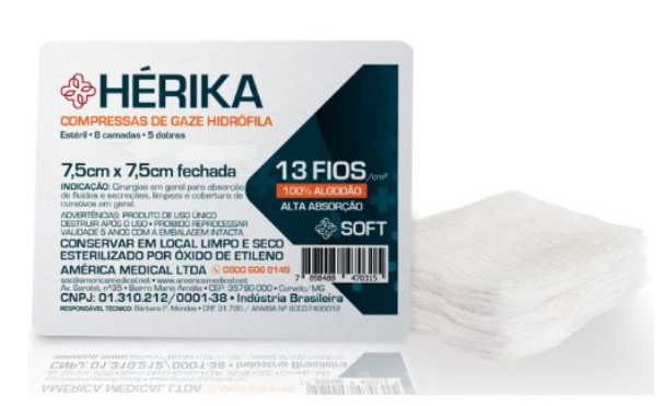 Gaze Esteril 7,5X7,5 13Fios Com 10 Esteril America/Herica