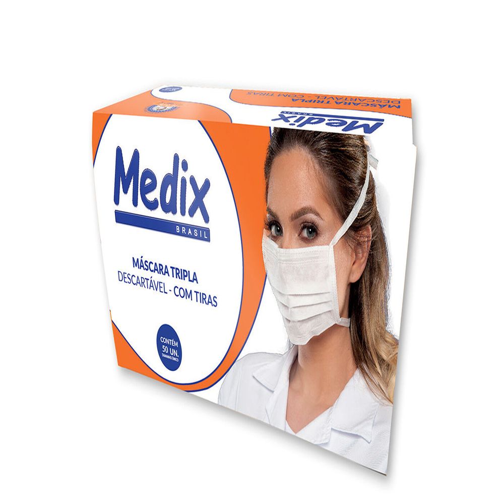 Máscara Tripla descartável em TNT Branca com 50 Medix