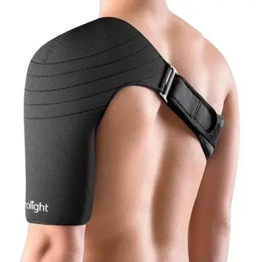 - Compressão ajustável com fecho aderente que permite regular a pressão de acordo com a necessidade, proporcionando alívio da dor e estabilização do ombro.