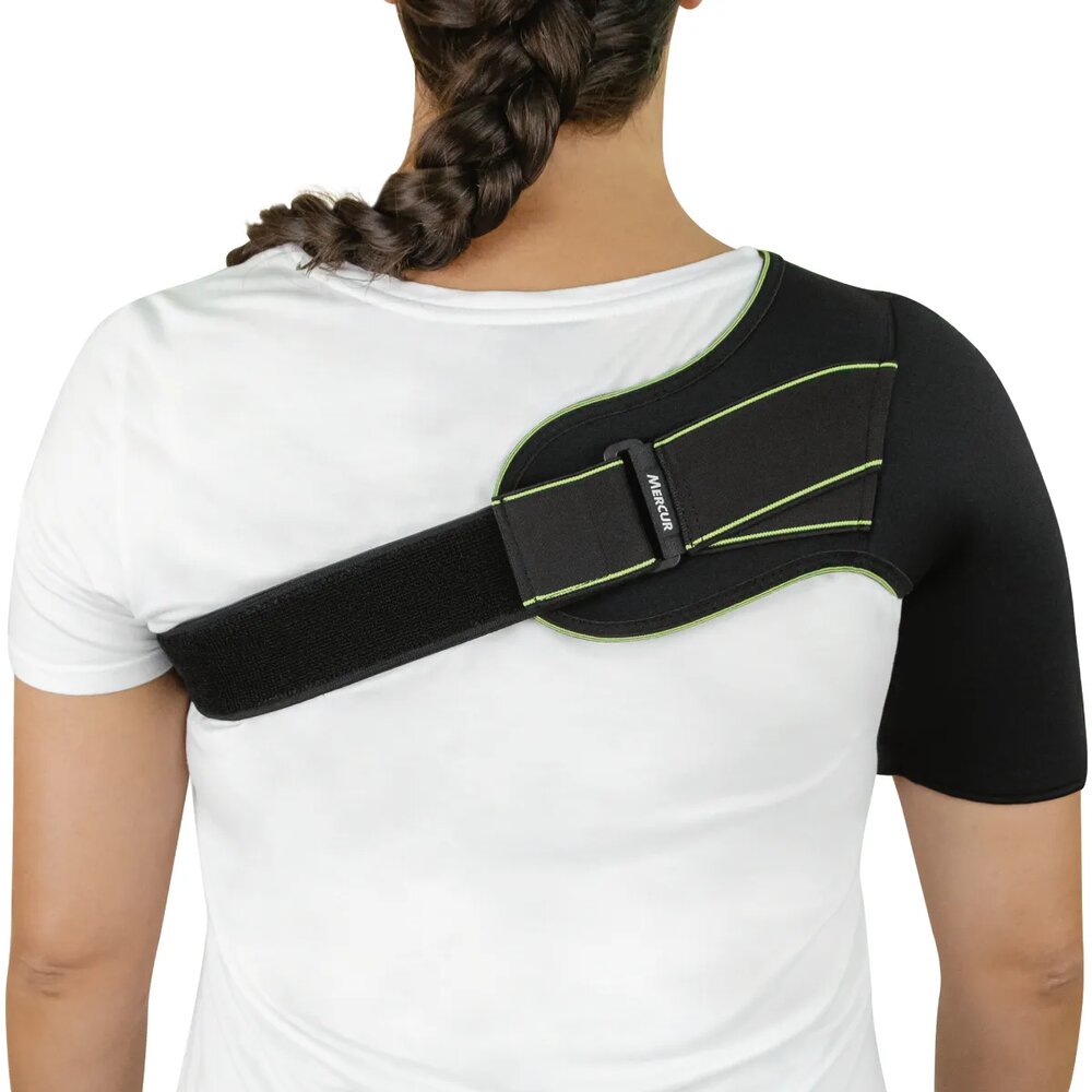 Suporte para Ombro com Ajuste Duplo – Mercur oferece proteção, compressão e estabilização da articulação do ombro. Ideal para reabilitação e prevenção de lesões, possui design anatômico e é confeccionado em Neoprene, que mantém a região aquecida, auxiliando na redução da dor.