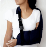 - Vista o braço imobilizado na tipoia com o cotovelo dobrado em 90°.