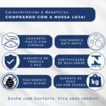 - Hipoalergênico: ideal para pessoas com sensibilidade a ácaros e bactérias.