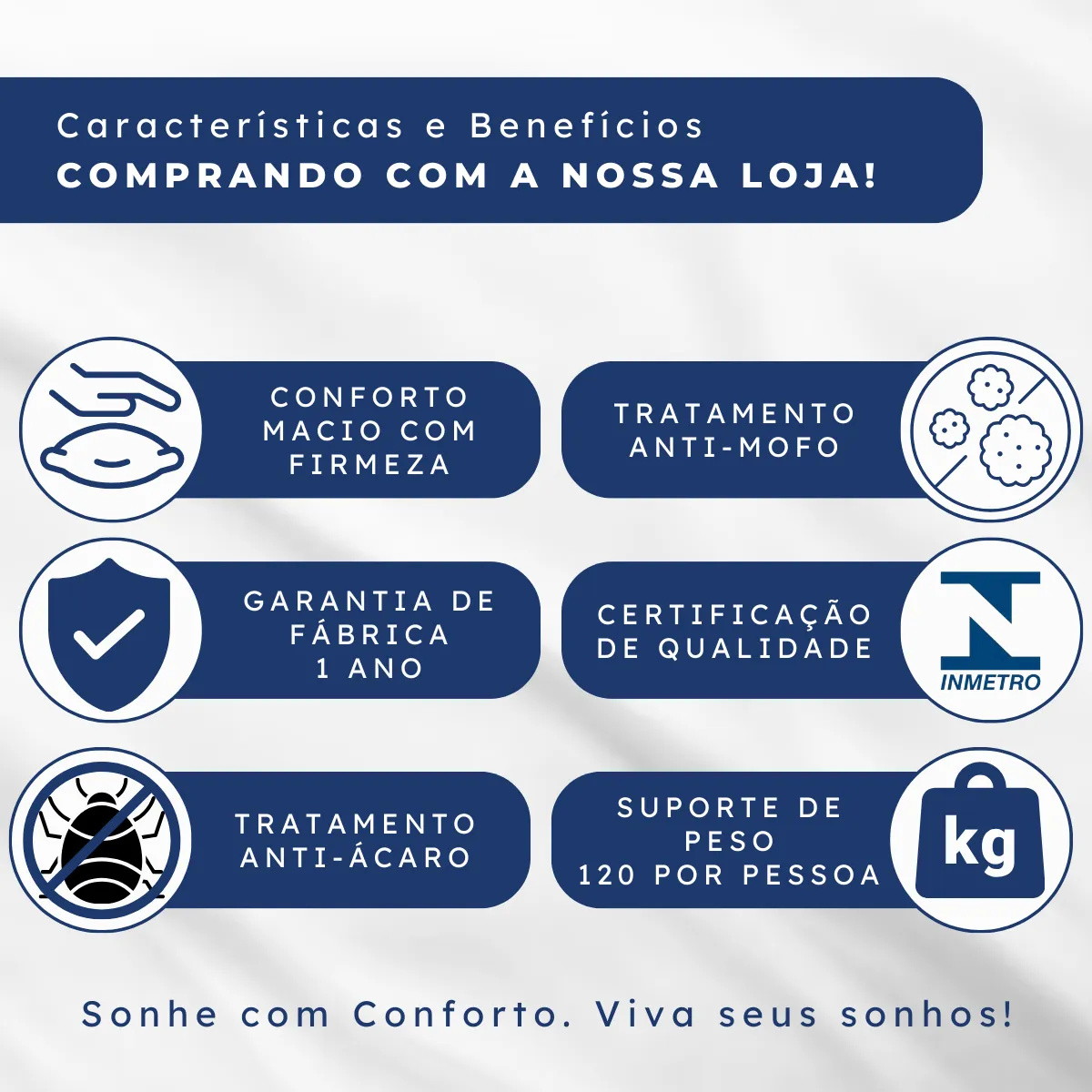 - Espuma D28 de alta durabilidade: mantém firmeza e formato por muito mais tempo.